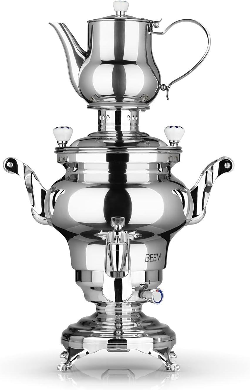 BEEM Odessa + samovar - 3 l acero inoxidable tetera turca eléctrica 1800 W 1 l tetera de acero inoxidable con colador hervidor de agua de 3 l dispensador con una sola mano