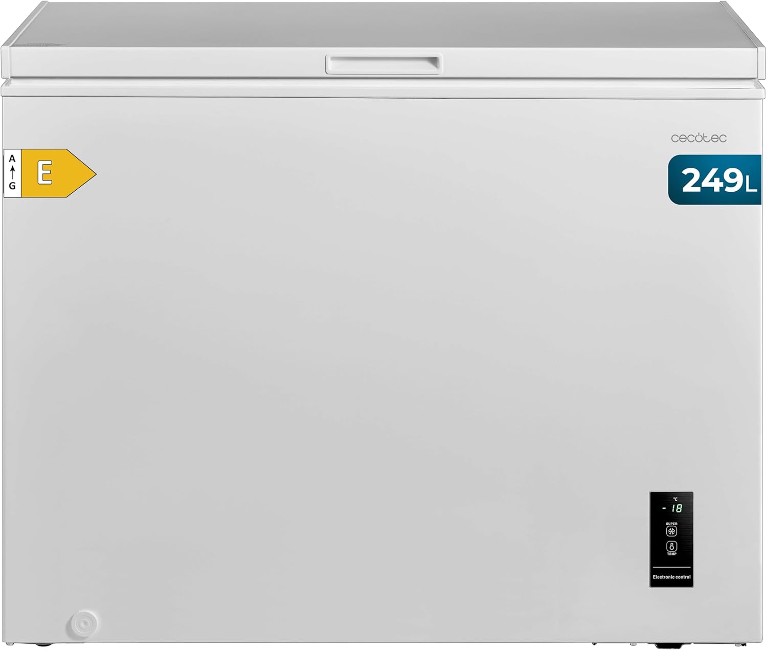 Cecotec Congelador Horizontal 249L Bolero CoolMarket Chest 249P White E. Cesta con Asas, Control Electrónico LED, UltraContact D-Cool, Dual Function, Puerta ZeroG 80°-30° , Fast Freezing, Compacto
