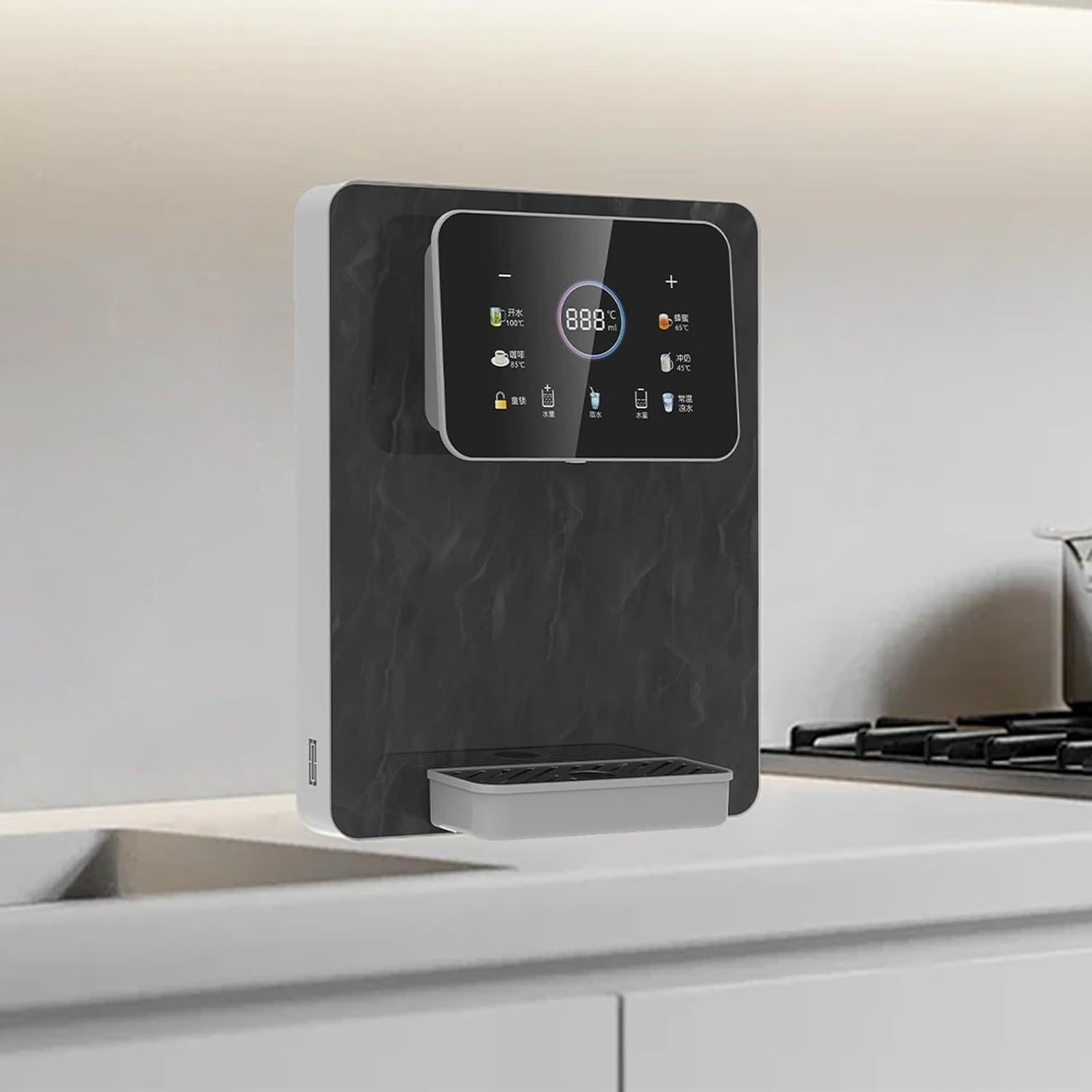 Dispensador instantáneo de agua caliente, calentamiento y dispensación rápidos, 5 ajustes de temperatura ajustables y 6 opciones de volumen, calentamiento rápido con pantalla táctil y bloqueo infantil