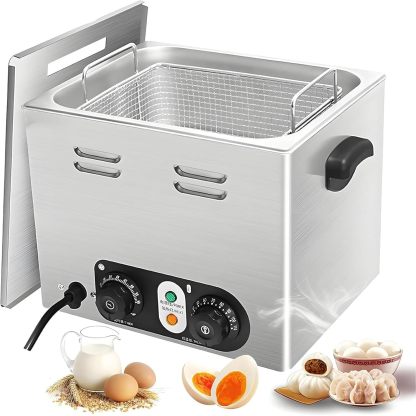 Hervidor de Huevos Comercial de 2600 W, Hervidor de Huevos Eléctrico de Acero Inoxidable con Cesta de 45 Piezas, Temporizador y Control de Temperatura Para Restaurantes B