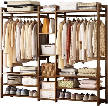 Perchero Burro de Bambú, Armario Abierto Madera, Multifuncional Perchero de Pie con Estantes y Ganchos para Ropa Zapatos Bolsas Canastas, Colgador Ropa para Salón 170x30x150cm