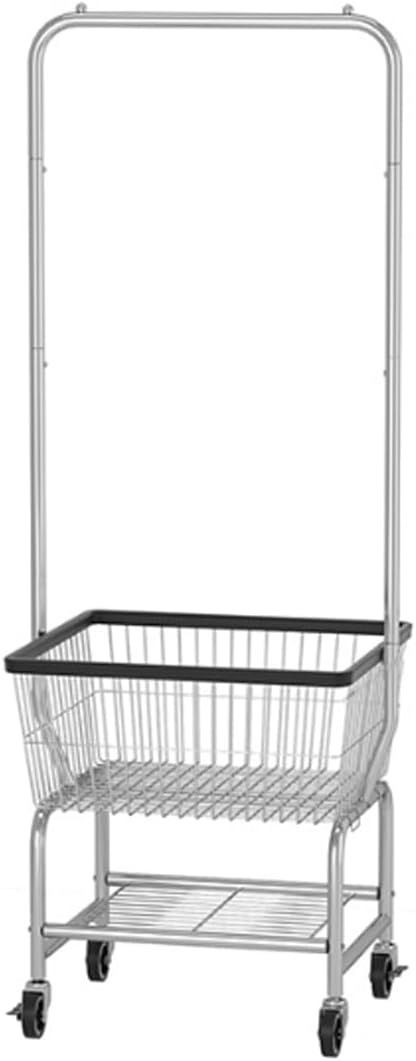 Perchero de Metal con Ruedas, Carrito de lavandería de Alambre con Cesta de Almacenamiento, Perchero Independiente con Carrito, Perchero Resistente para Tienda de Ropa