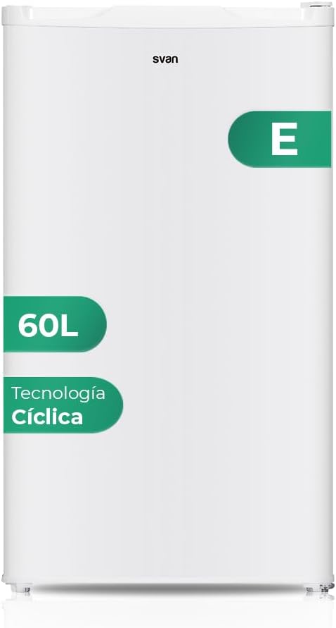 Svan Congelador Vertical Blanco SCV85502E. Capacidad 60 Litros, Puerta Reversible, Bajo nivel Sonoro, Eficiencia Energética Clase E