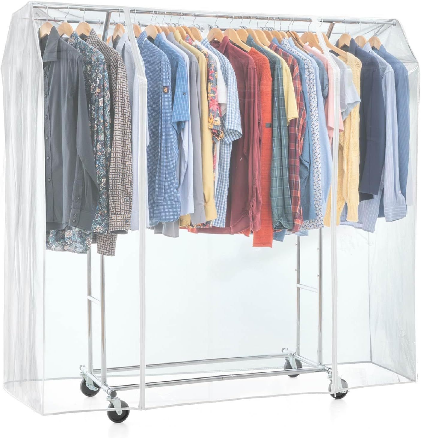 Tatkraft Denver y Safe - Burro Ropa Resistente, con Funda, Carga 110 kg, Perchero Doble Barra, con Ruedas, 129-169x55x148-172 cm, Acero Cromado